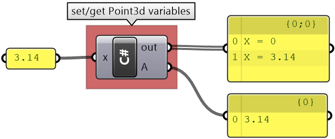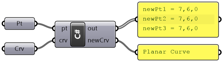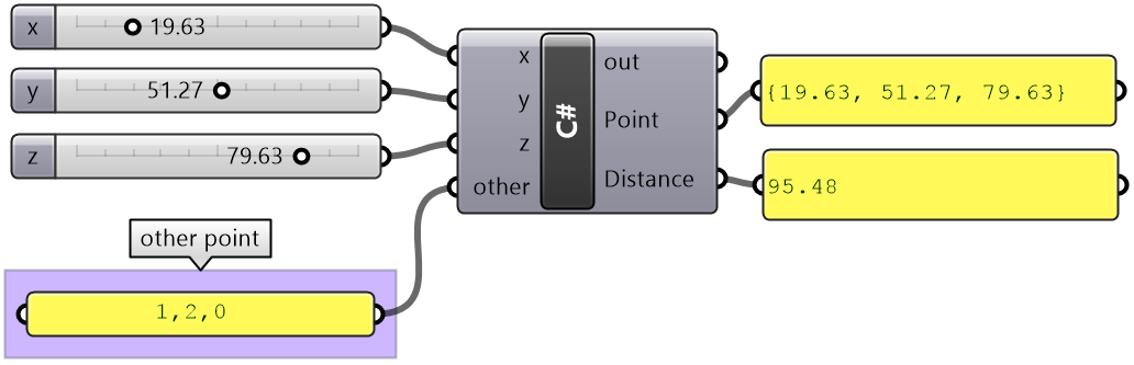 private void RunScript( double x, double y, double z, Point3d other, ref object Point, ref object Distance)