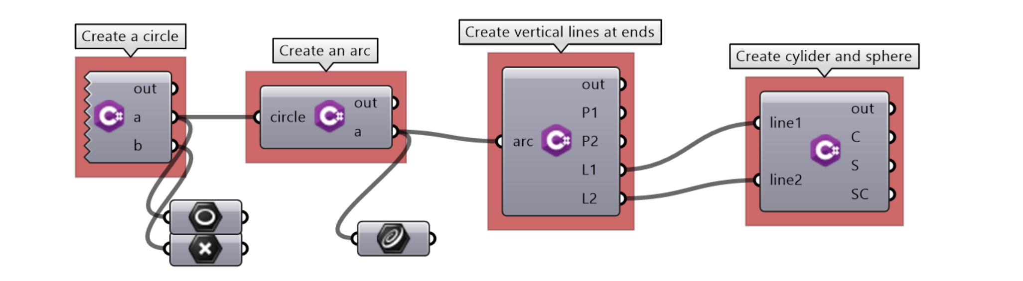 In this chapter, we will focus on the part of the SDK dealing with Rhino geometry. We will show examples of how to create and manipulate geometry using the Grasshopper C# component.