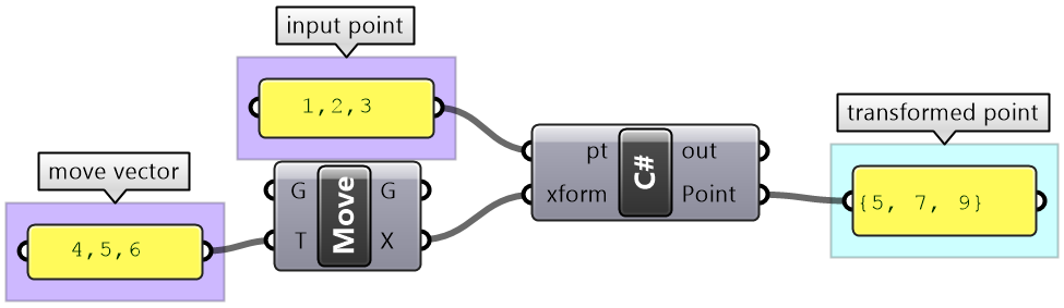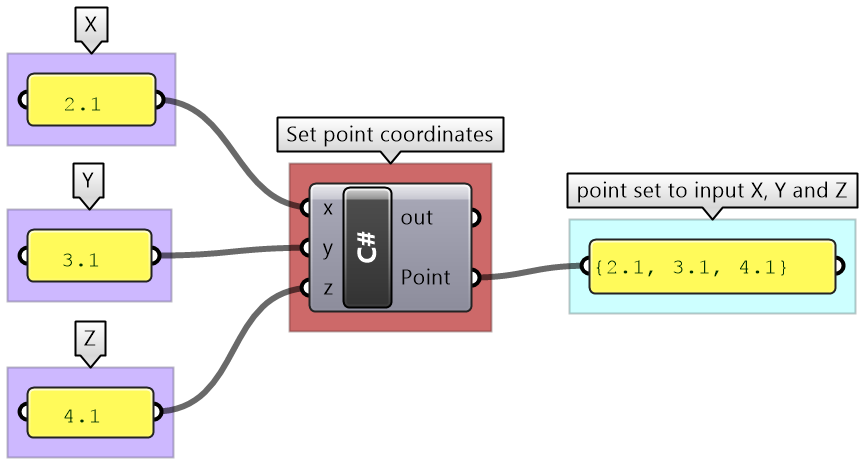 The following example shows how to define a variable of type Point3d using a GH C# component.