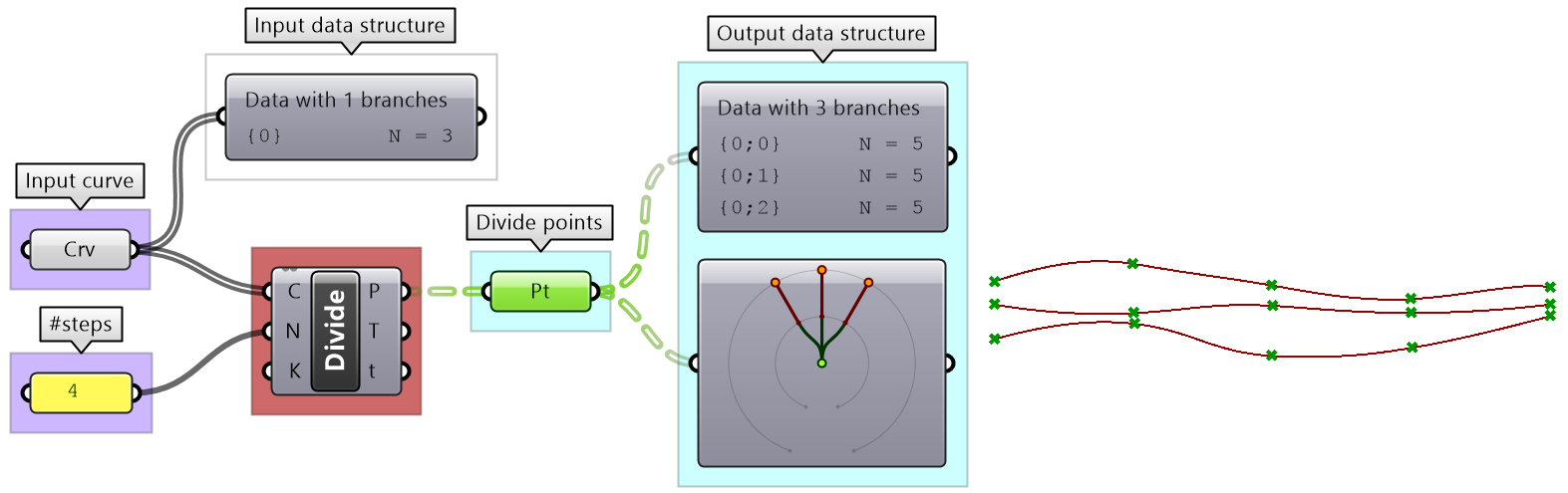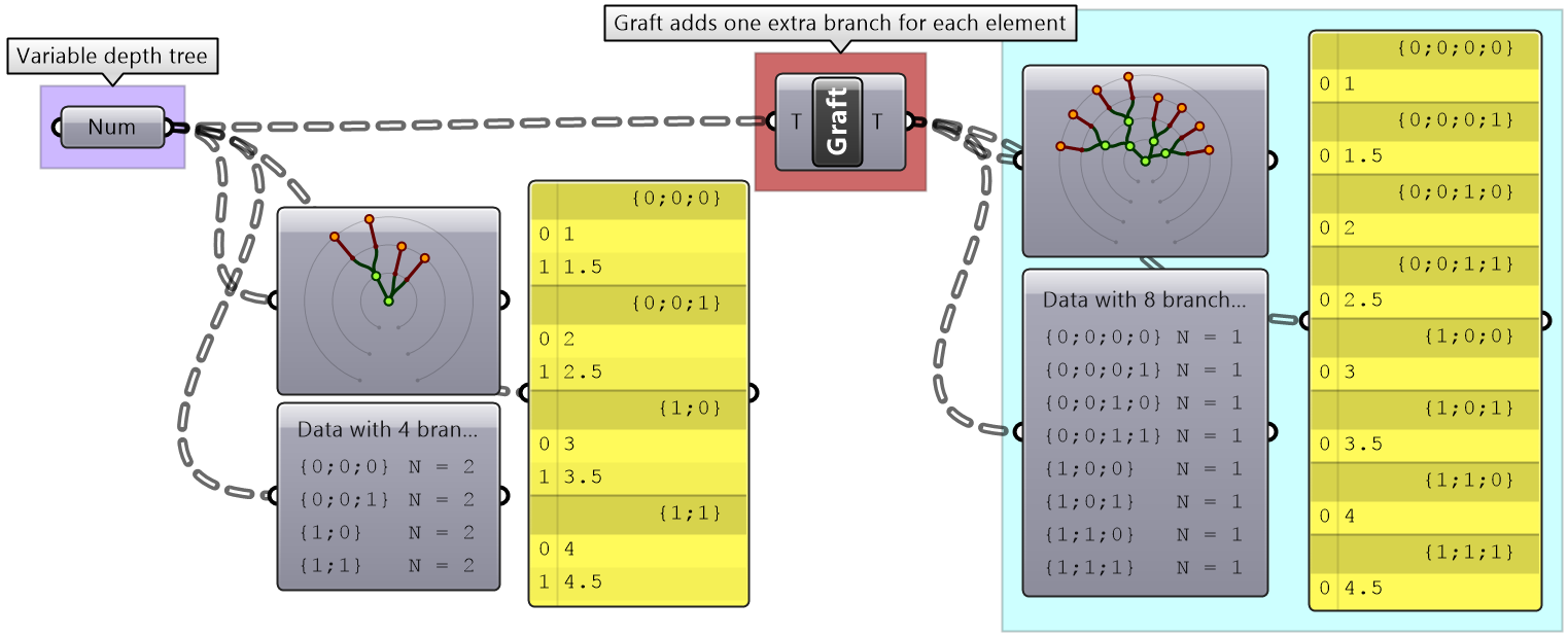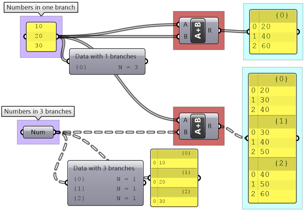 We will elaborate on data tree matching later, but you can already see that GH components do pay attention to the data structure and the result can vary considerably based on it. This is one of the complications inherited in using one unifying data structure in a programming language.