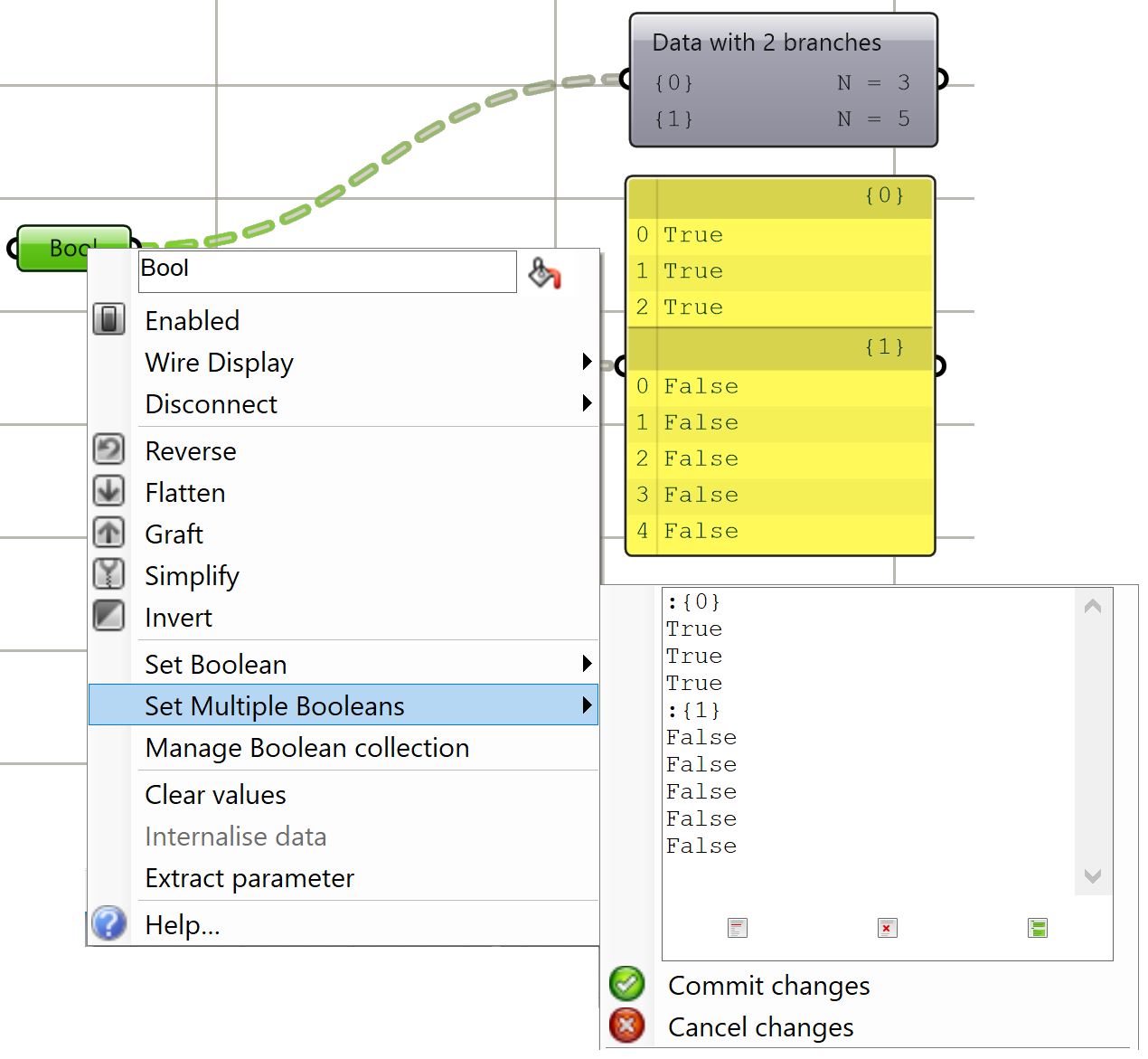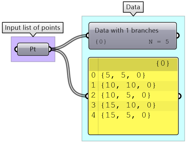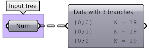 There are many ways to generate complex data trees. Some explicit, but mostly as a result of some processes, and this is why you need to always be aware of the data structures of output before using it as input downstream. It is possible to enter the data and set the data structure directly inside any Grasshopper parameter. Once set, it is relatively hard to change and therefore is best suited for a constant input. The following is an example of how to set a data tree directly inside a parameter.