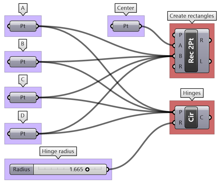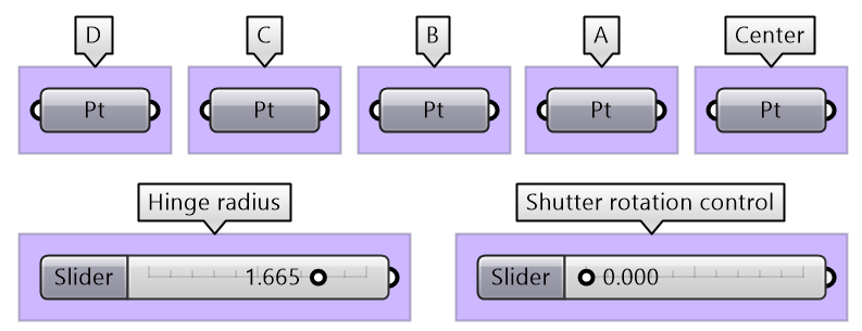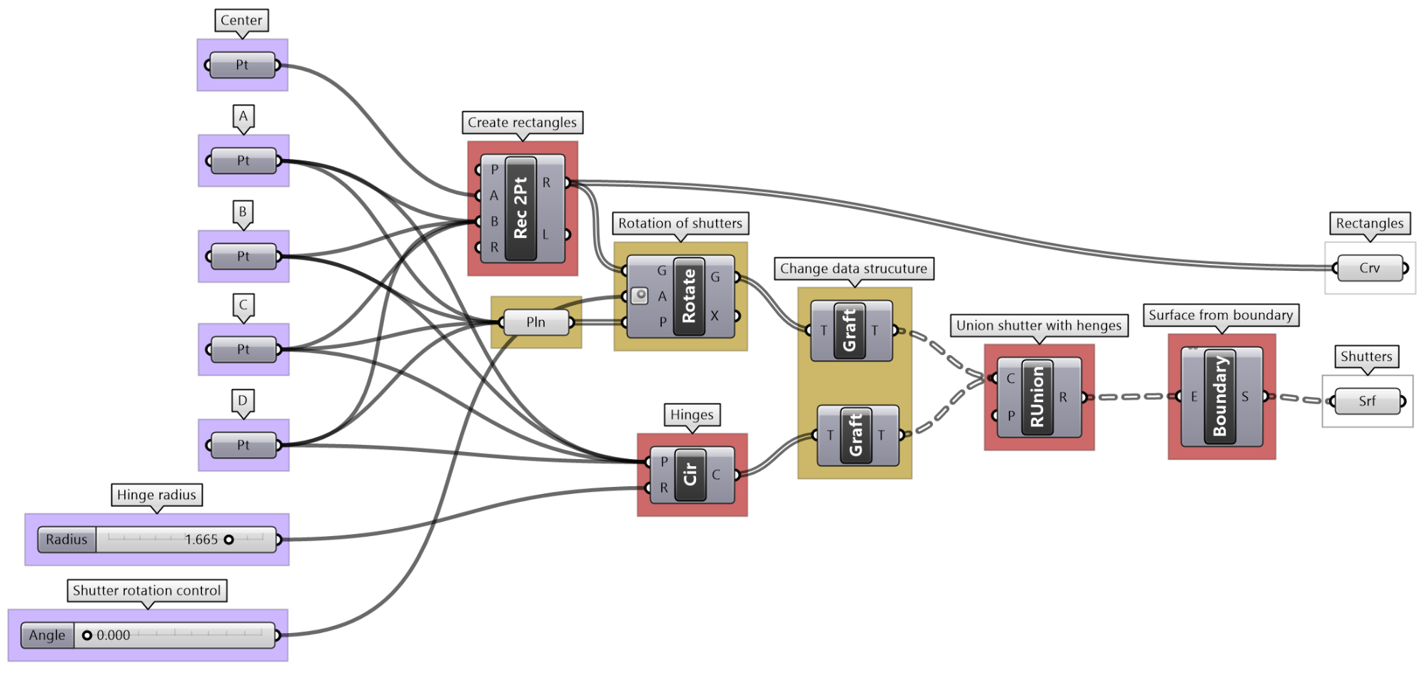 Given four corner points on a plane and a radius for the hinge, create a shutter that can open and shut as in the image using a rotation parameter![]() |