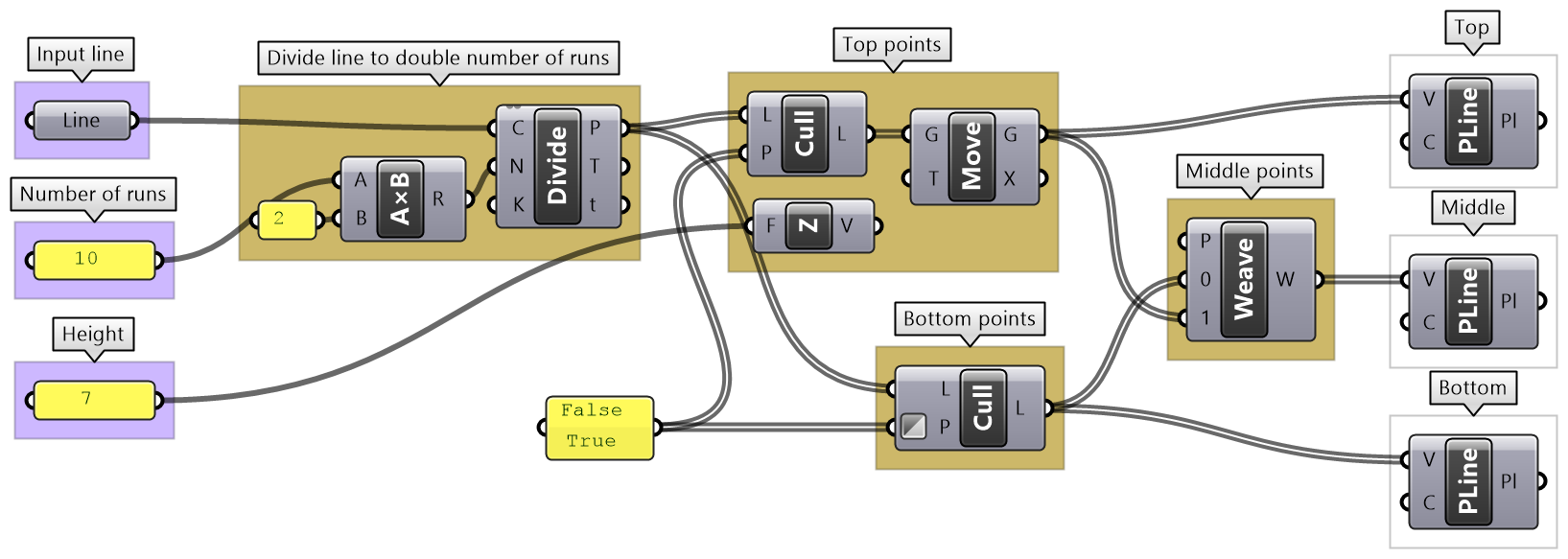 The following example examines different built-in mapping in the Path Mapper and how it changes the data structure. The Polyline component creates one polyline through each branch of the tree. Notice how different mapping affect the result.