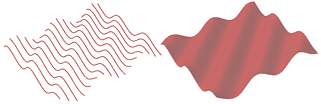 The following example shows how to create NurbsCurves, NurbsSurfaces, and a lofted Brep using the sine of an angle: