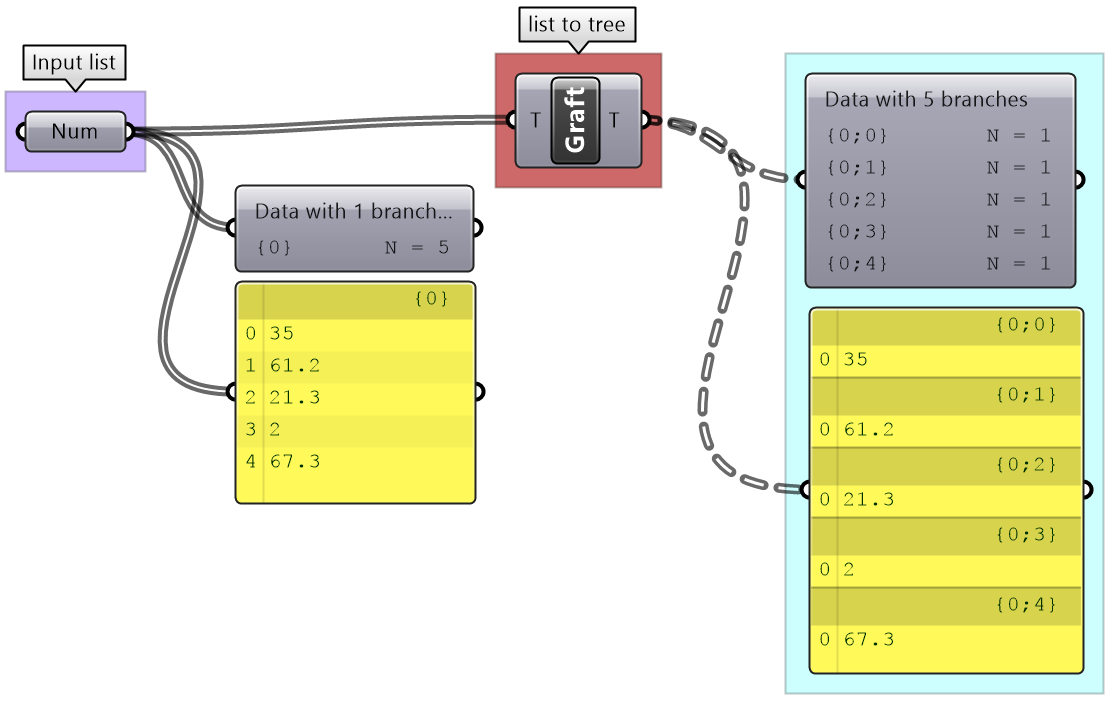 It might feel unintuitive to complicate the data structure (from a simple list to a tree), but grafting is very useful when trying to achieve certain matching. For example if you need to add each element of one list with all the elements in the second list, then you will need to graft the first list before inputting to the addition process.