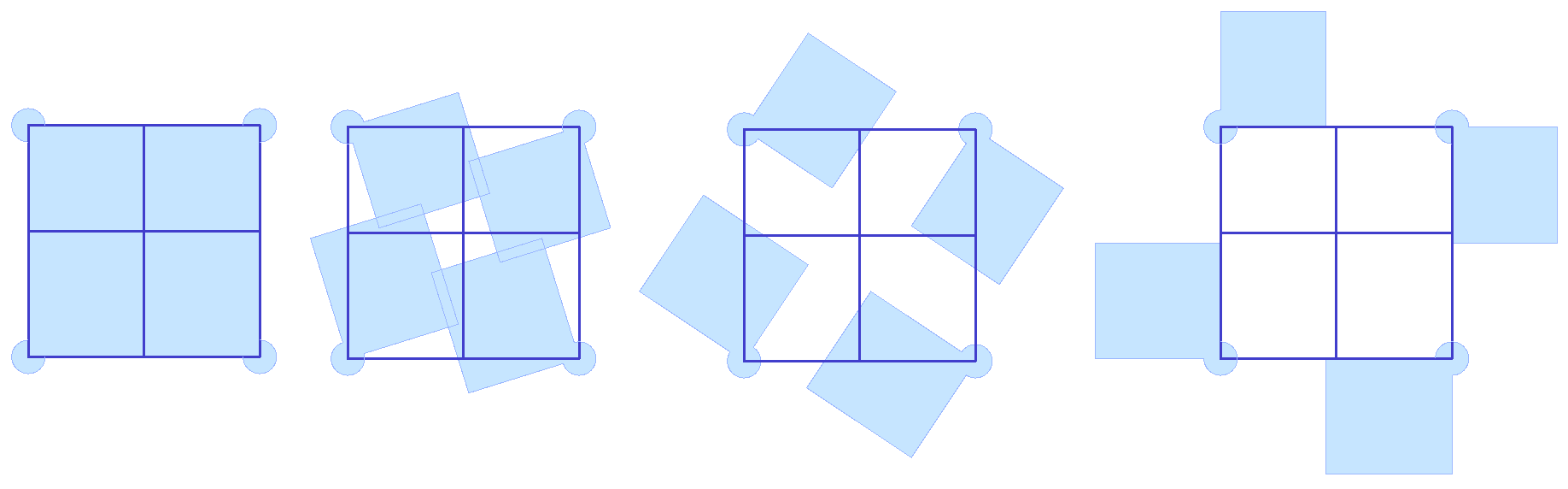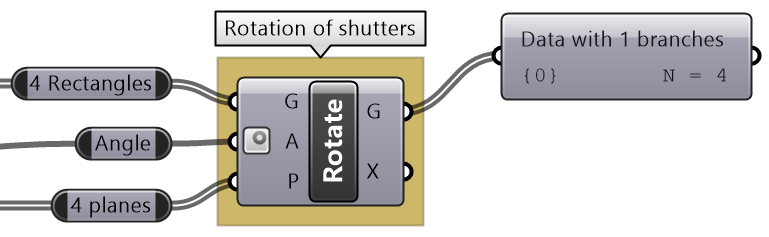 Given four corner points on a plane and a radius for the hinge, create a shutter that can open and shut as in the image using a rotation parameter![]() |