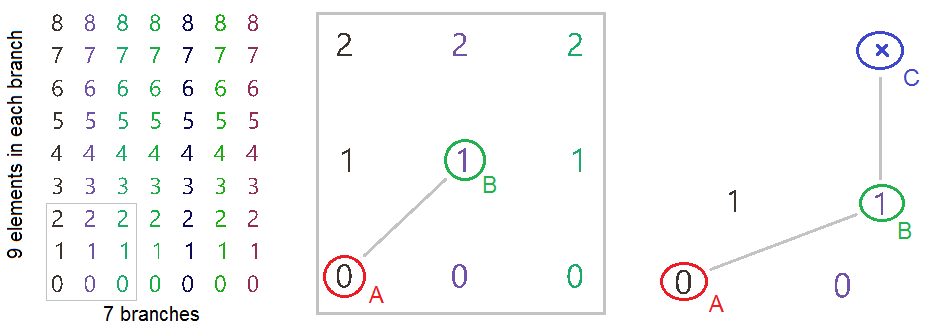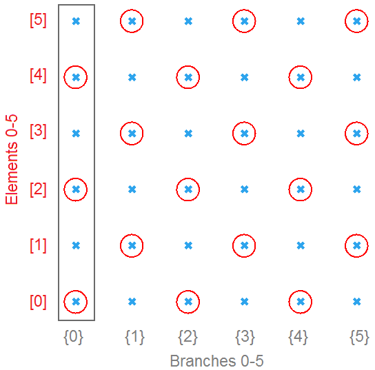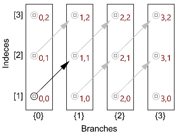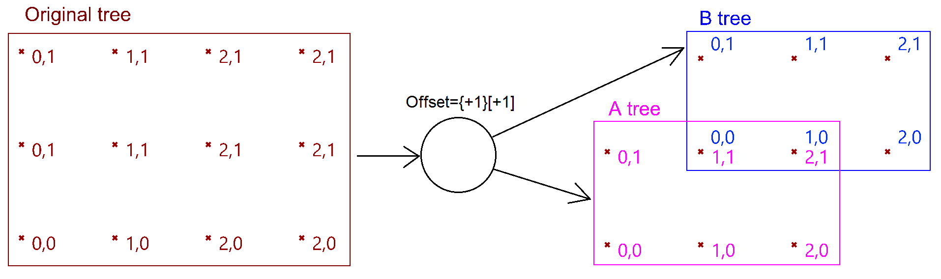 The first operation has to do with solving the general problem of connectivity between elements in one tree or across multiple trees. Suppose you have a grid of points and you need to connect the points diagonally. For each point, you connect to another in the +1 branch and +1 index. For example a point in branch {0}, index [0], connects to the point in branch {1}, index [1].