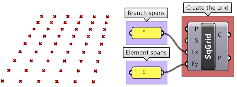 Trees can be thought of as a list of branches. When using list operations on trees, each branch is treated as a separate list and the operation is applied to each branch independently. It is tricky to predict the resulting data structure and therefore it is always important to check your input and output structures before and after applying any operation. To illustrate how list operations work in trees, we will use a simple tree, a grid of points, and apply different list operations on it. We will then examine the output and its data structure.