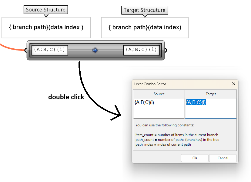 For more details about the Path Mapper, please refer to the help inside the component in Grasshopper.