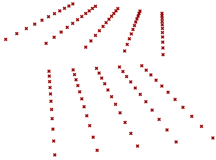 Create the pattern shown in the image using a square grid of 7 branches where each branch has11 elements.![]() |