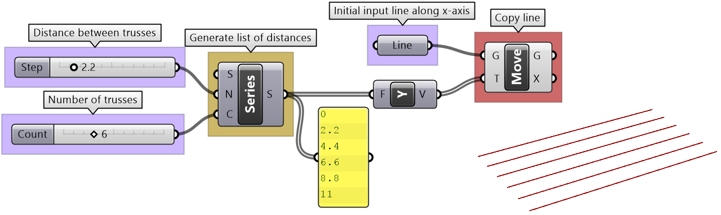 All components that generate lists of numbers (such as Range and Series) can also generate trees when given a list of input.