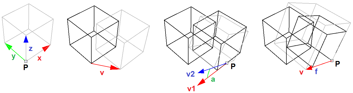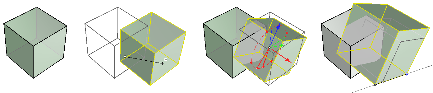 Data such as the base point for your initial box, width, height, scale factor, move direction, rotation angle, etc. are requested by the commands, and the designer does not need to prepare ahead of time. Also, the final output (the boolean mass) becomes directly available and visible as an object in your document.