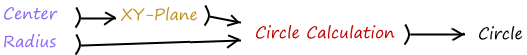 | 3. Input: Use the given input (center and radius). Feed the radius to the Circle component |