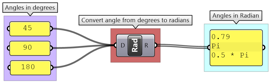 Converting data involves mapping. For example, you may need to convert an angle unit from degrees to radians ( GH components accept angles in radians only).